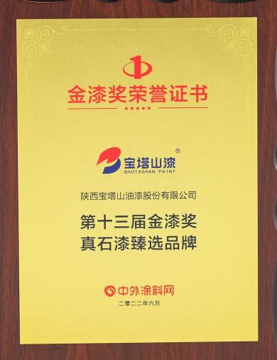 2022年6月,寶塔山漆榮獲第十三屆金漆獎(jiǎng)“杰出工程涂料品牌”。
