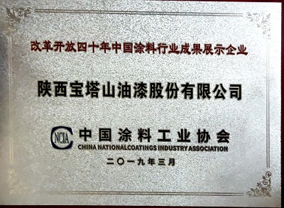 2019年3月,,寶塔山漆被中國(guó)涂料工業(yè)協(xié)會(huì)評(píng)為“改革開(kāi)放四十周年中國(guó)涂料行業(yè)成果展示企業(yè)”
