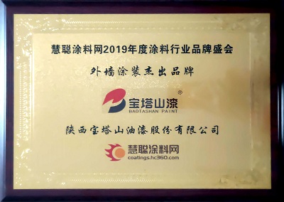 2019年6月,寶塔山漆的“寶塔山”品牌在中外涂料網(wǎng)第十屆金漆獎(jiǎng)評(píng)選活動(dòng)中被評(píng)為“杰出工業(yè)涂料品牌”