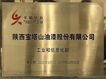2021年,寶塔山漆入選專(zhuān)精特新”小巨人“企業(yè)名單。