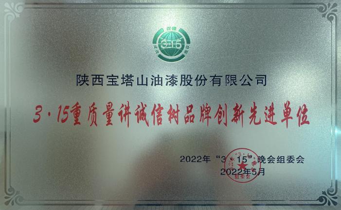 2022年5月,寶塔山漆榮獲“3·15重質(zhì)量講誠(chéng)信樹(shù)品牌創(chuàng)新先進(jìn)單位”。
